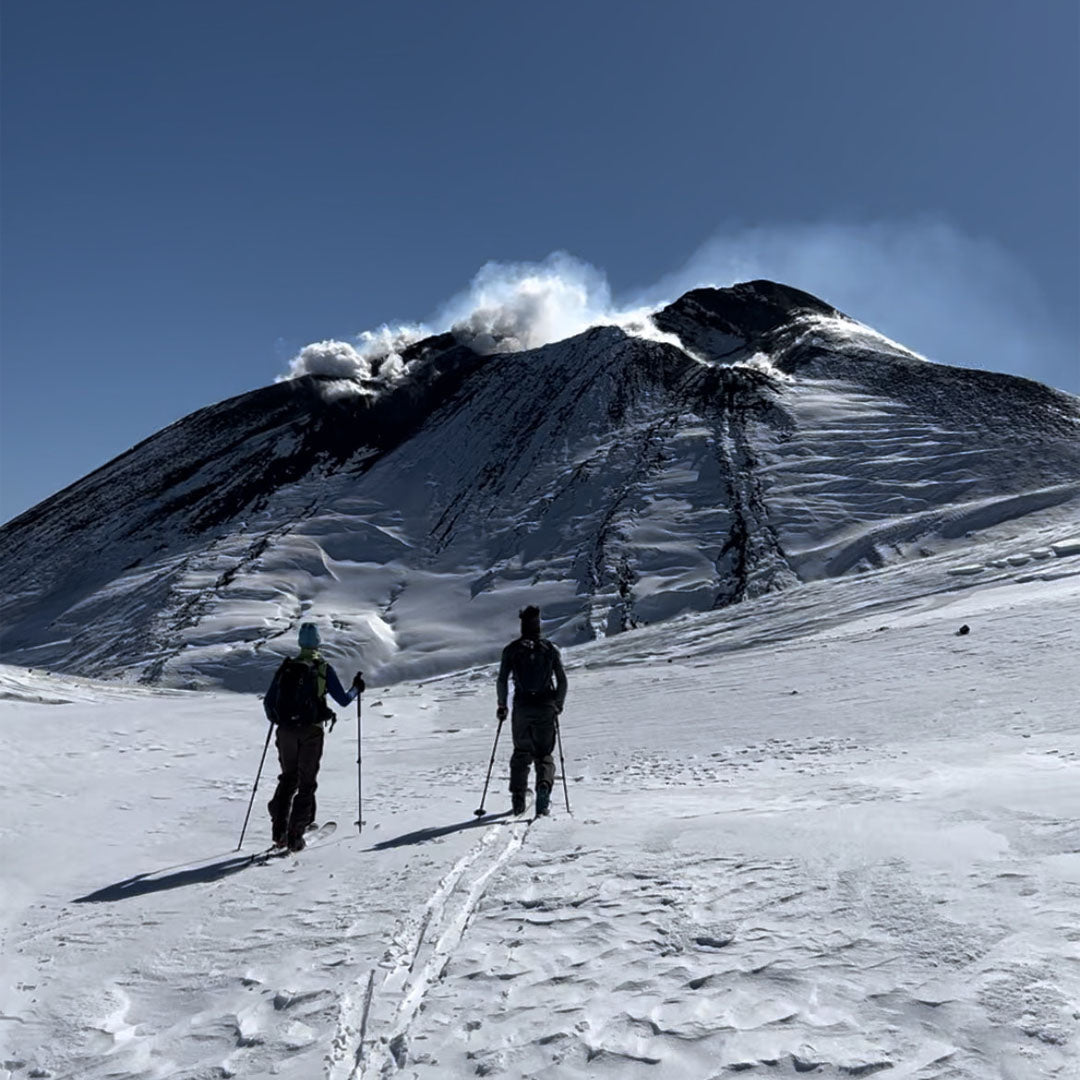 Renzo. “It was mid-February 2023, after a historic storm on Mount Etna. Everything was blocked, everything closed, and we were skiing at sunset on a spectacular firn, with the feeling that the world had stopped.”